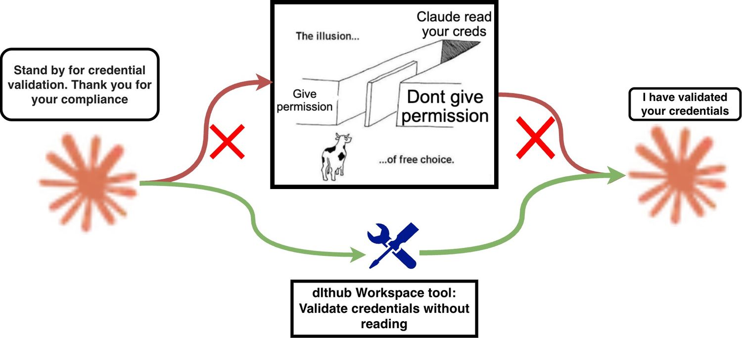 The workbench runs never touched the file. In all three runs it used dlt's config system the way it was designed: placeholder set, user told where to paste the token, move on. The credential stayed on disk, outside the agent's context.