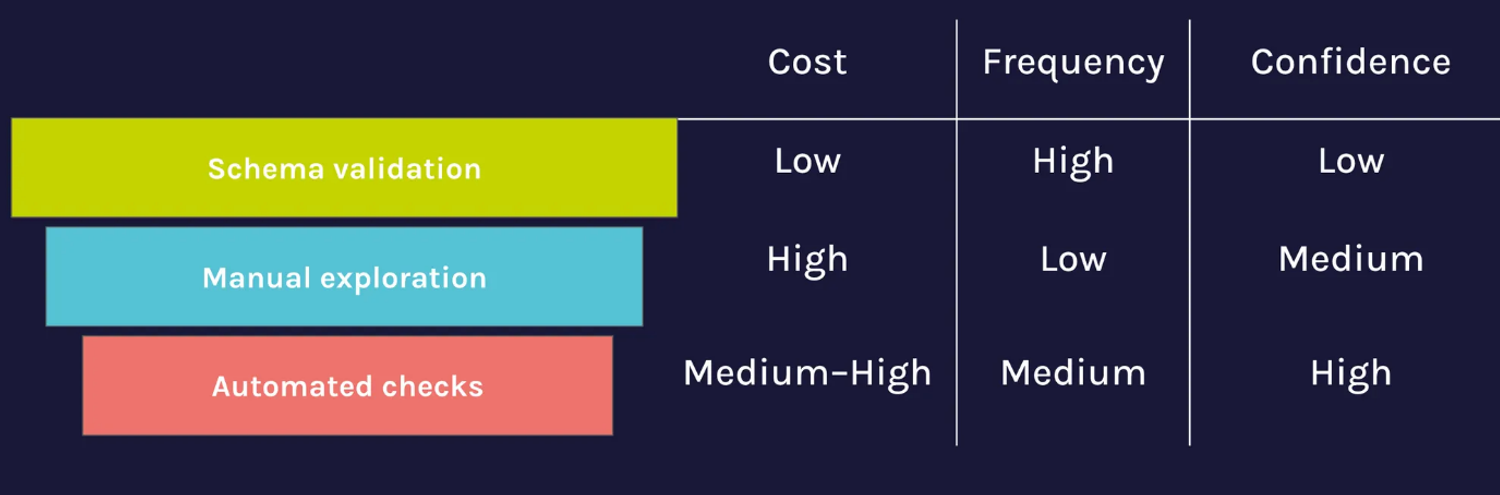 - Automated checks: Finally, turn those assumptions into always-running tests that ensure that the assumptions you base your downstream work remain the same over time. (Coming soon in dlthub Runtime)