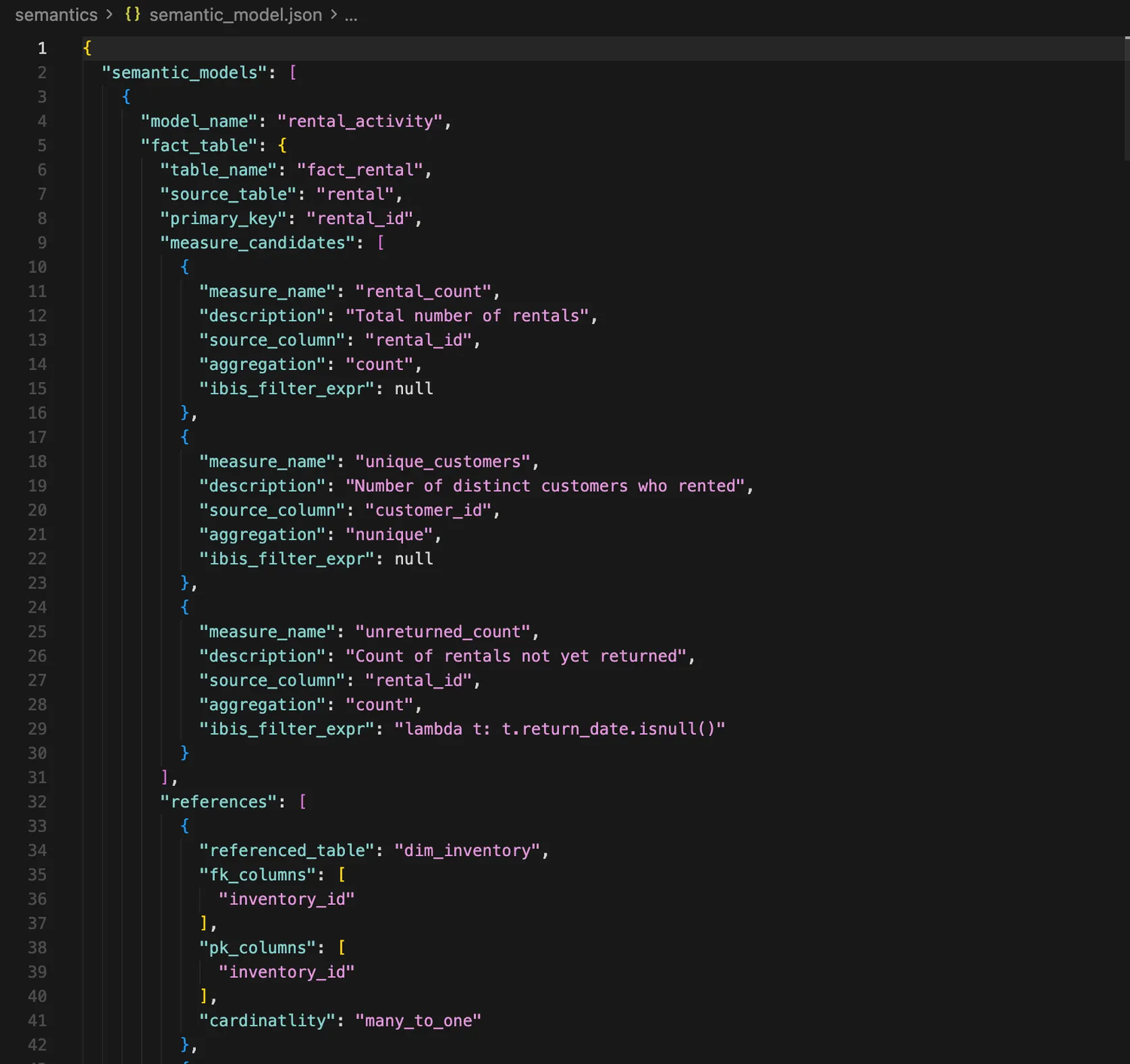 One command, python pipeline.py -i runs extraction AND semantic inference. The output is a semantic_model.json that BSL consumes directly as you can see in the image below.