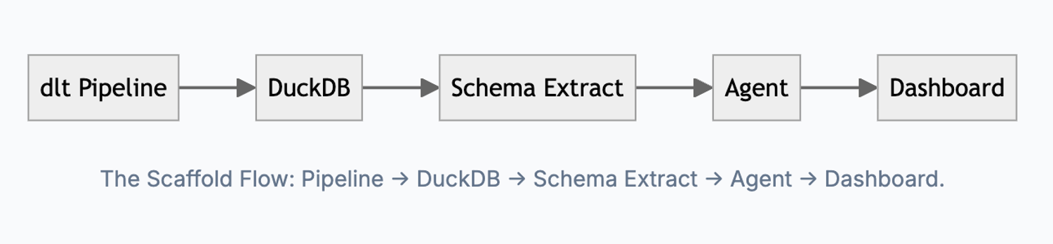 - Scaffold: Run the command. It executes the pipeline, extracts schema from DuckDB, creates a timestamped workbench folder.