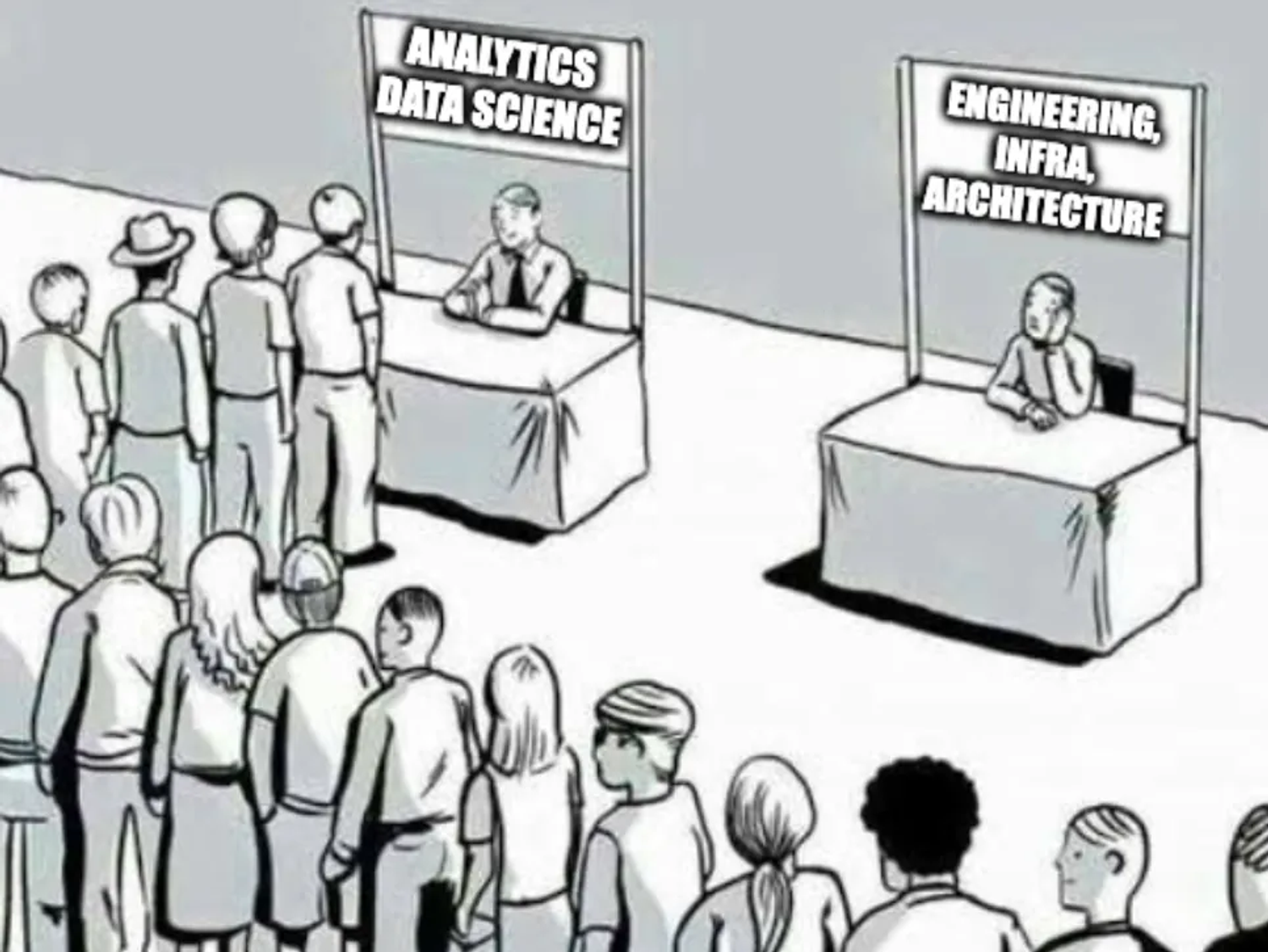 - 2010 (the democratization): The job was simple. If you could script (python/sql/shell/batch/ruby/r), you did everything: Ingestion, Analysis, and Reporting. Scope was small, teams were small and the “team of one” were common.