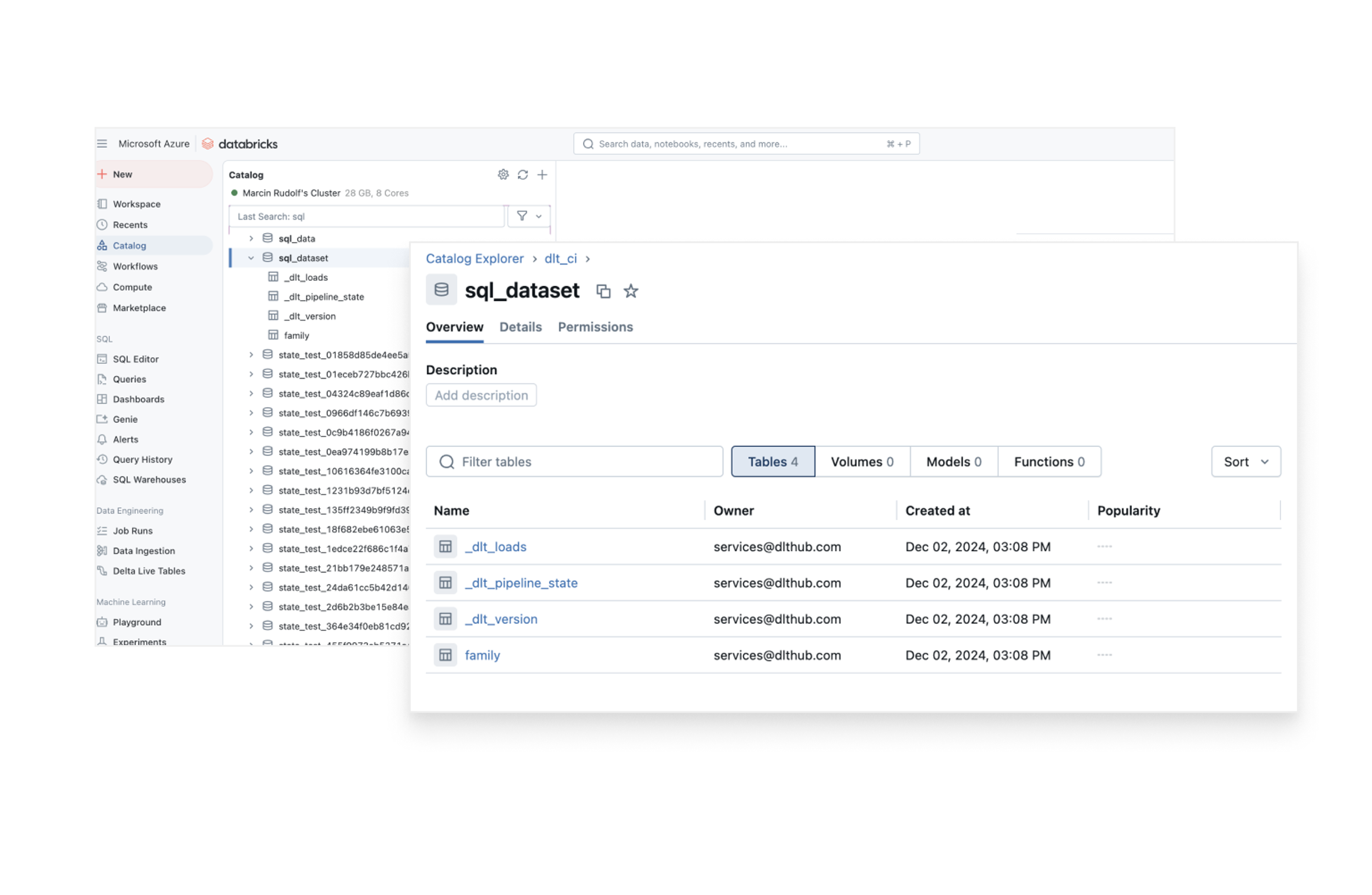 Effortlessly integrate dlt with Databricks Unity Catalog for unified data governance and simplified access control. dlt works in harmony with Unity Catalog as well as Delta Lake and Iceberg to ensure secure and organized data workflows.